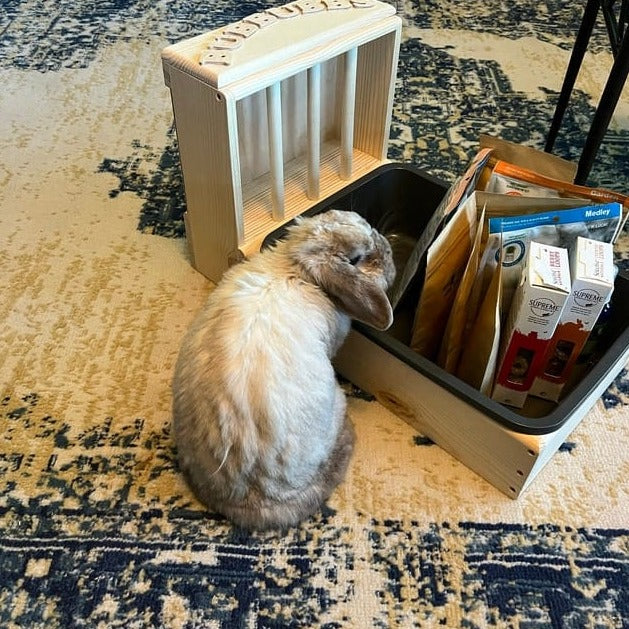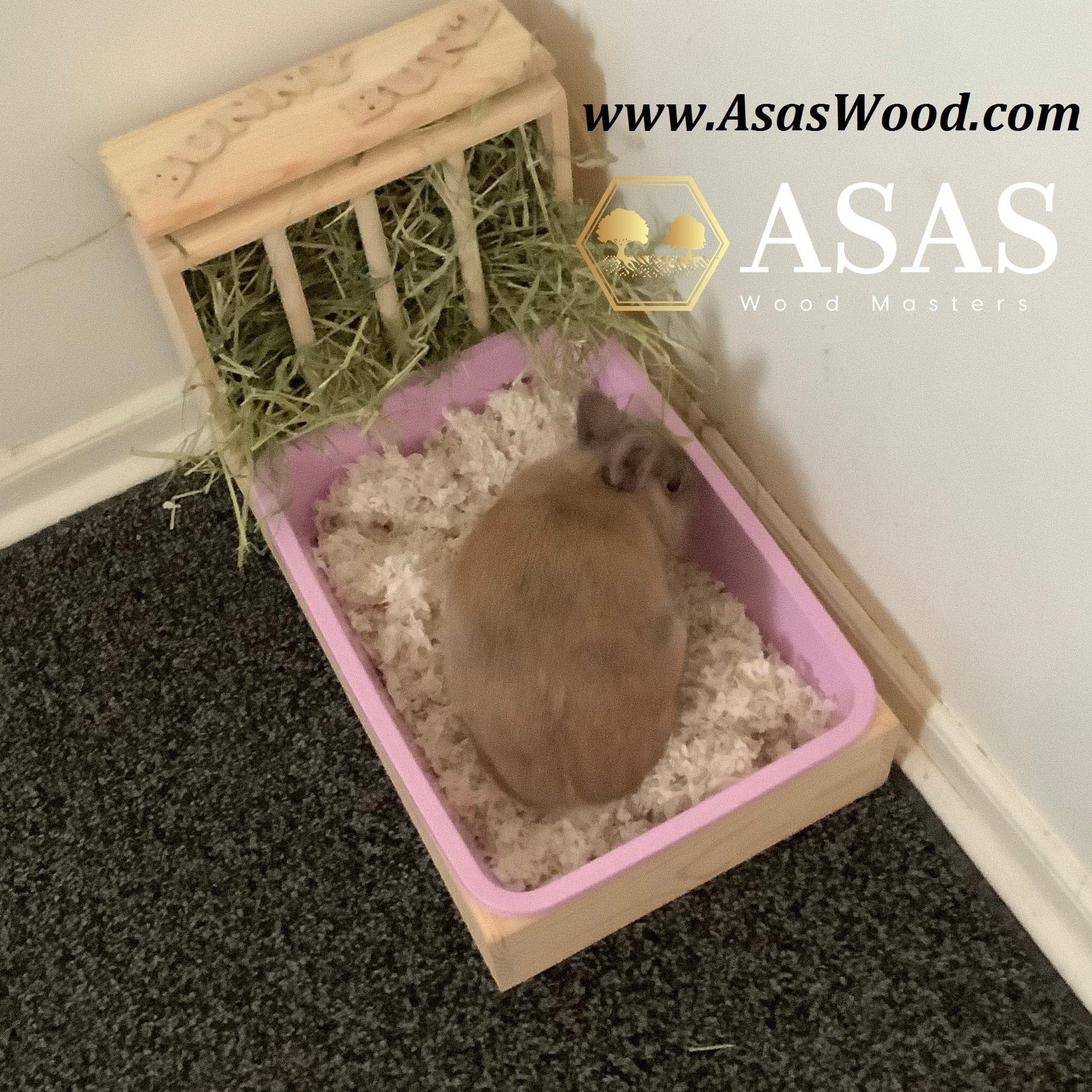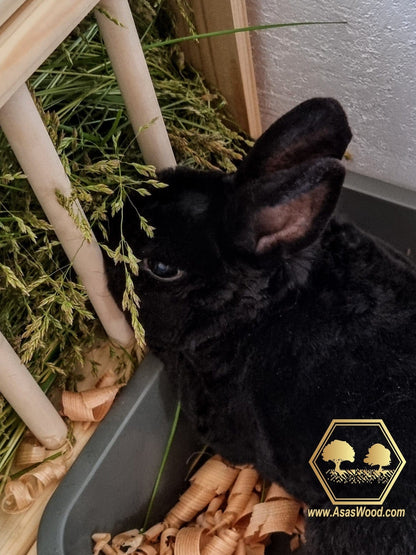 Gönnen Sie Ihrem kleinen Hoppler das beste Zuhause mit diesem Hasenheu-Futterspender ❤️ MITTLERE GRÖSSE ❤️ mit Einstreuwanne! Hergestellt aus natürlichem, für Kaninchen unbedenklichem Holz, sorgt dieser handgefertigte Futterspender und die Einstreuwanne dafür, dass Ihr Kaninchen sicher und bequem lebt – und besonders niedlich aussieht. Es ist der perfekte Ort, um seinen Heutag zu verbringen! 🐰