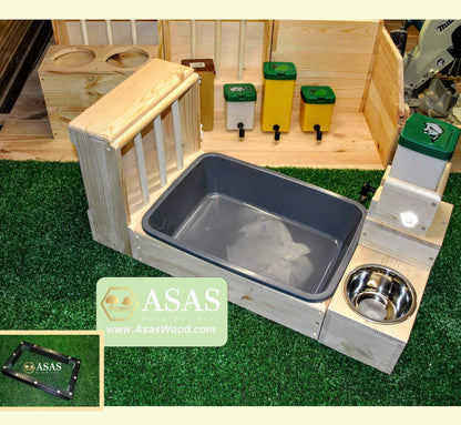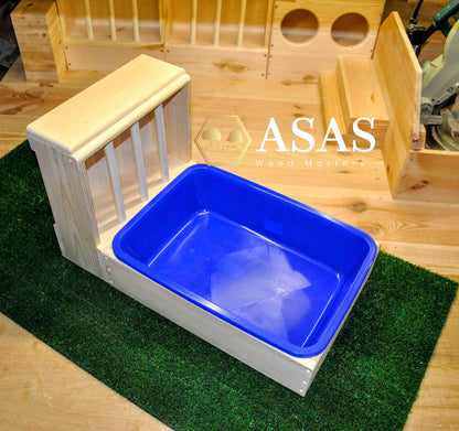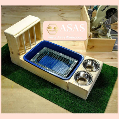 Kaninchen-Heu-Futterautomat mit Katzentoilette