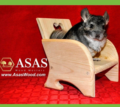 Dieser Chinchillastuhl ist das ultimative Spielmöbelstück für das pelzige, anspruchsvolle Chinchilla. Egal, ob sie sich niederlassen, entspannen oder einfach nur vor ihren Freunden angeben wollen, dieser Holzstuhl ist der perfekte Ort, um dies mit Stil zu tun. Das ist Möbel, neu interpretiert!