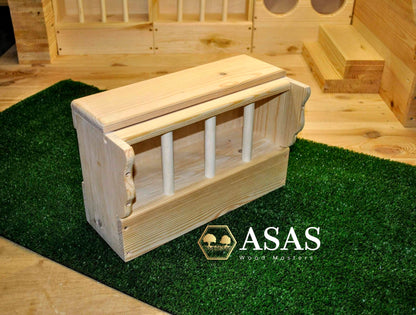 This hay feeder with litter box is made from Solid Kiln - Dried Wood / PINE.