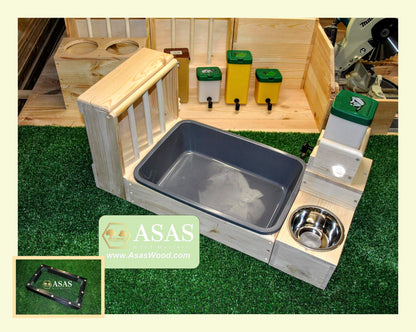 Rabbit Hay feeder with litter box and Nipple bottle station ❤️ MEDIUM