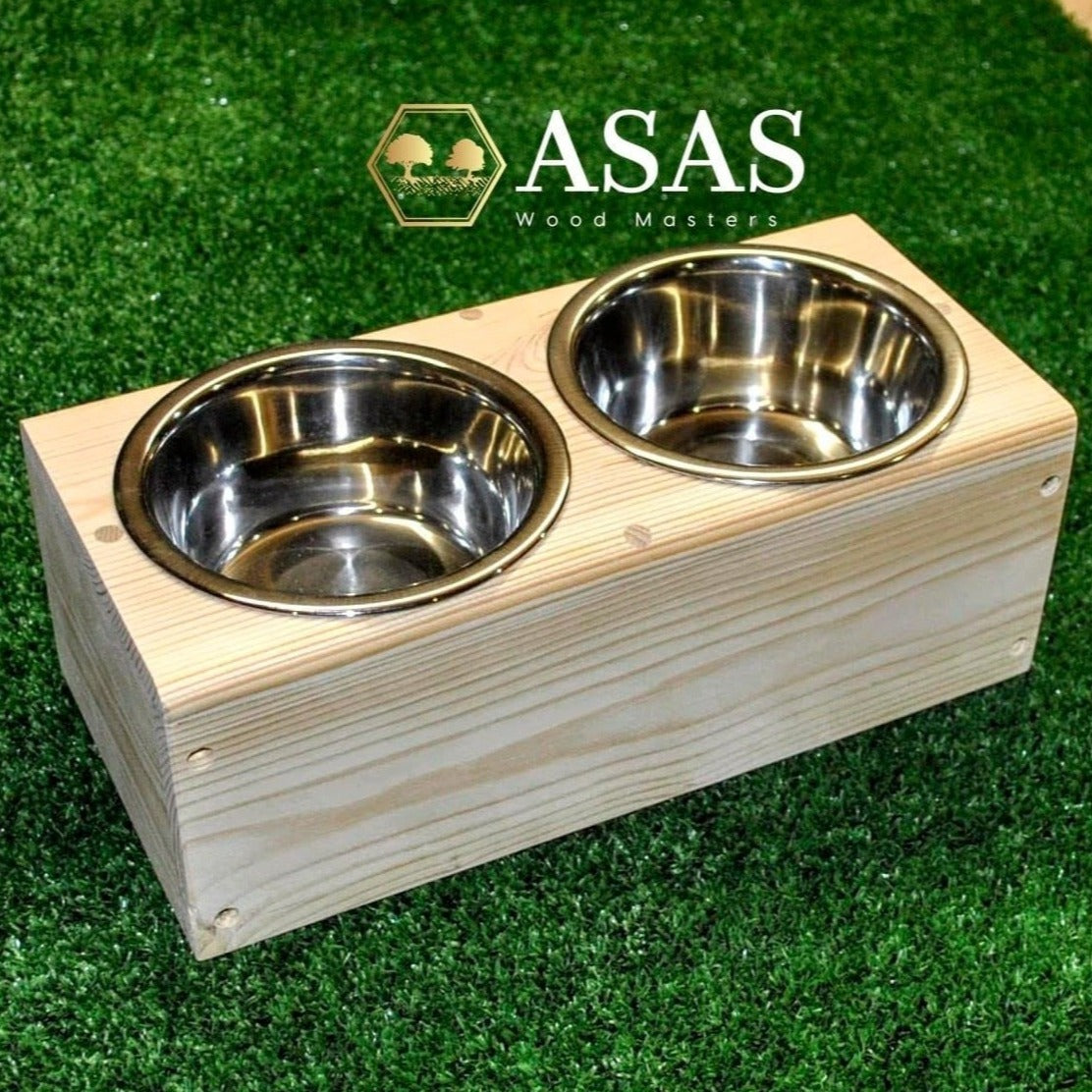 Cette station de bols de nourriture et d’eau est fabriquée à partir de bois massif séché au four.