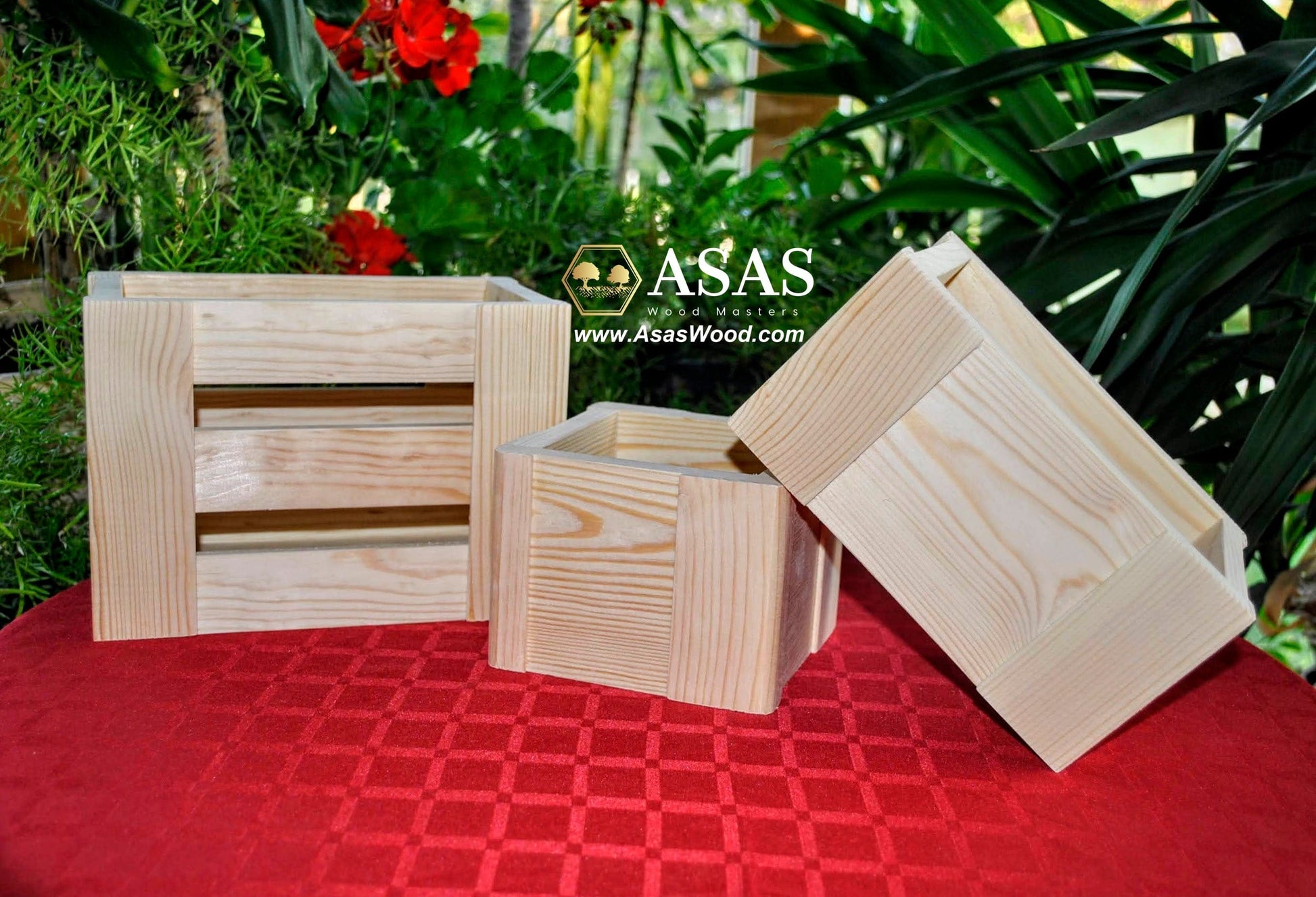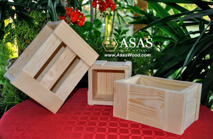 Trois boîtes arrivent simples, faites à la main à partir de bois non traité.