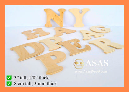 Lettrage artisanal en bois non fini ~ Pour la décoration, la pépinière, les enseignes, le mariage, les projets de bricolage, etc.
