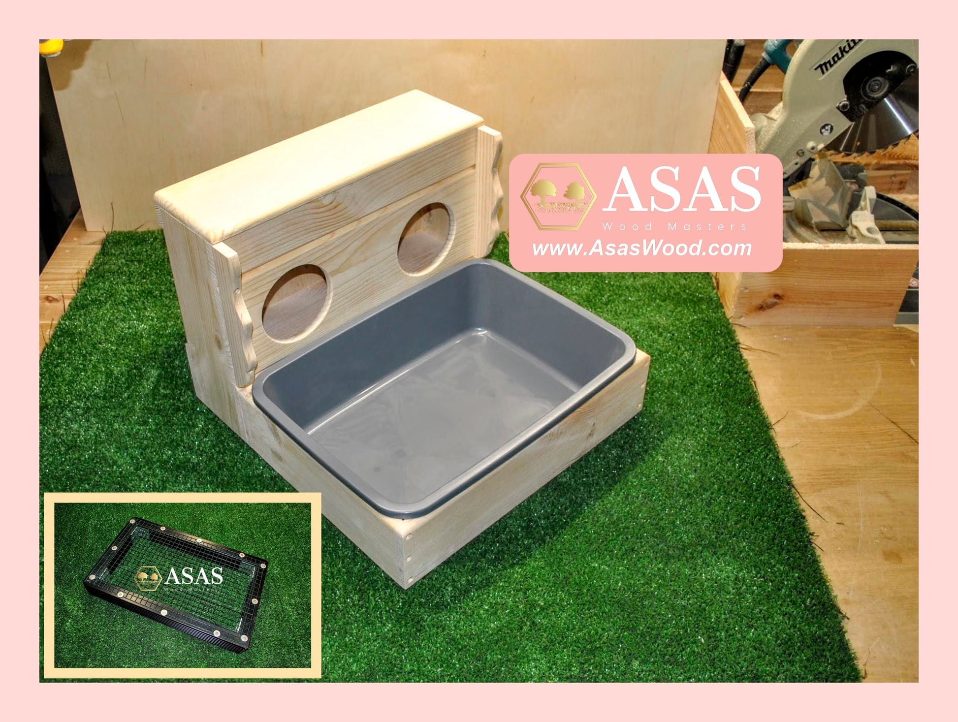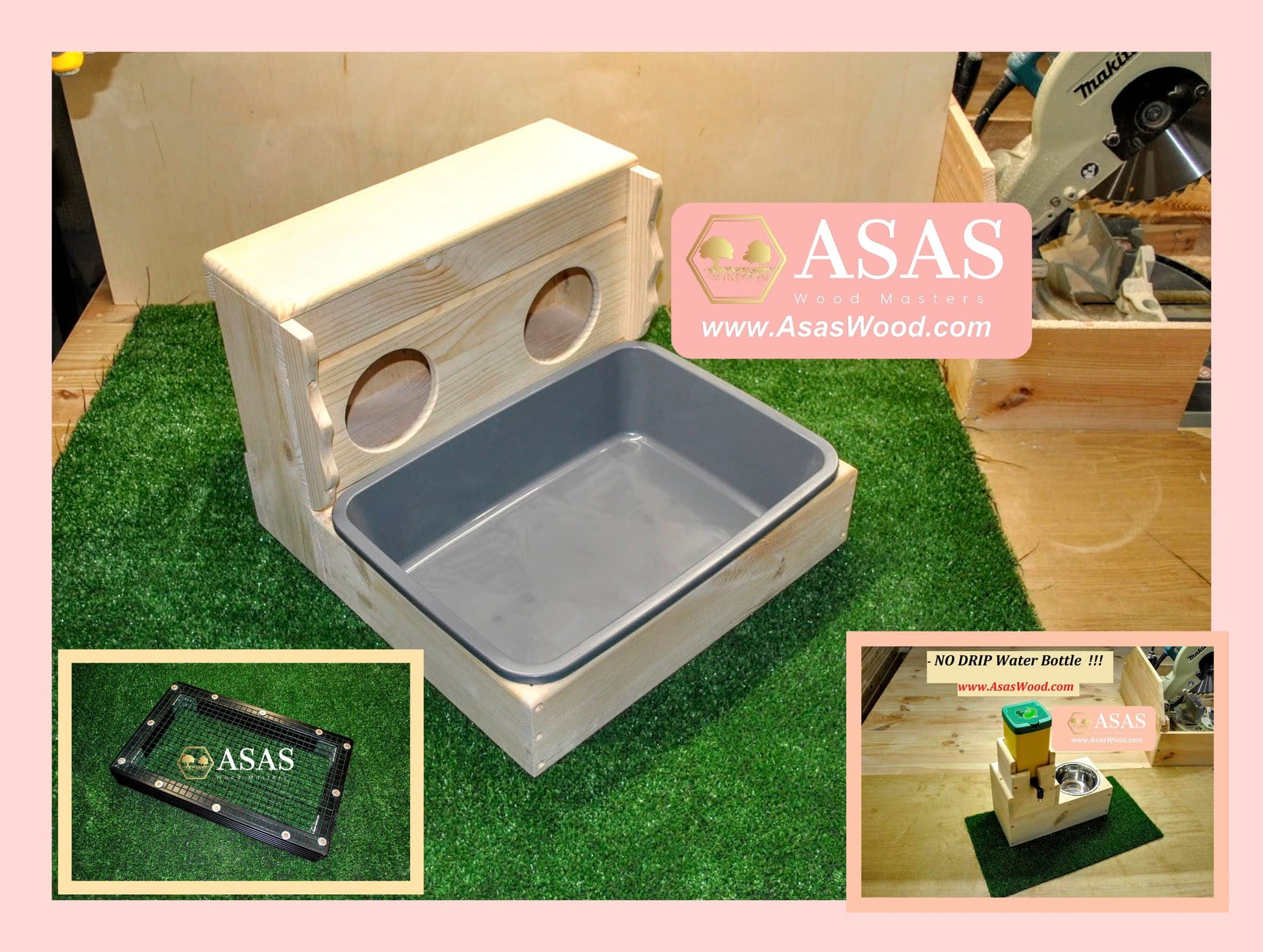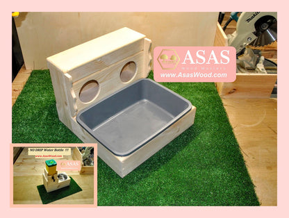 ❤️ Mangeoire à foin en bois avec caisse d'un litre pour lapin ❤️