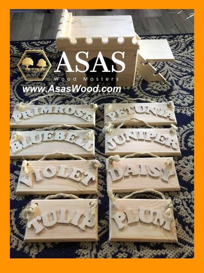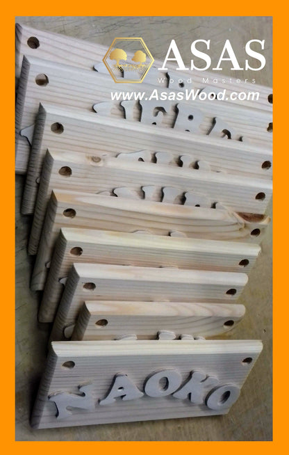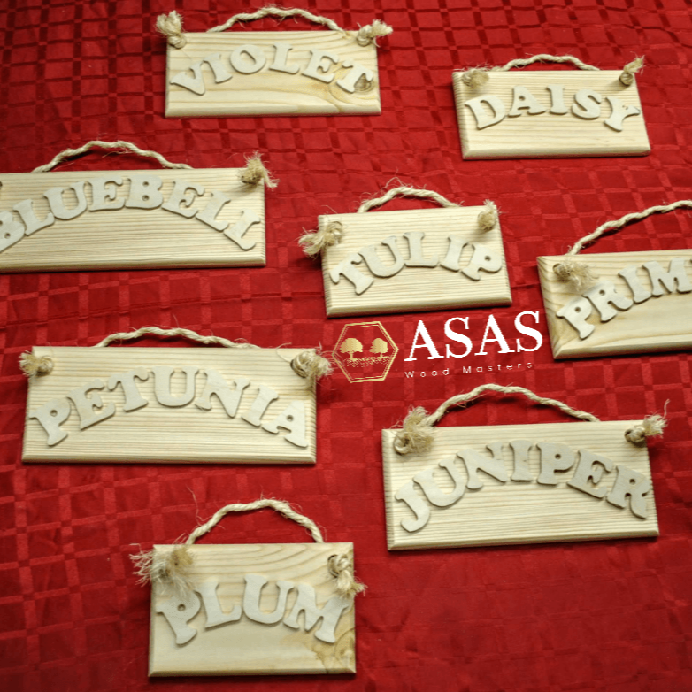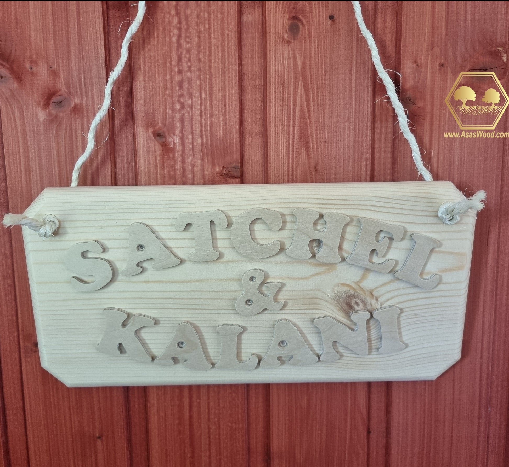 You'll love your personalized nameplate, crafted from wood and hand-cut letters with care. It comes with a sisal rope for hanging.