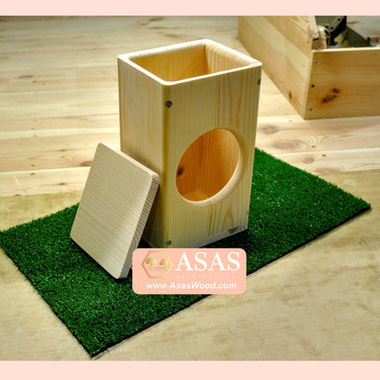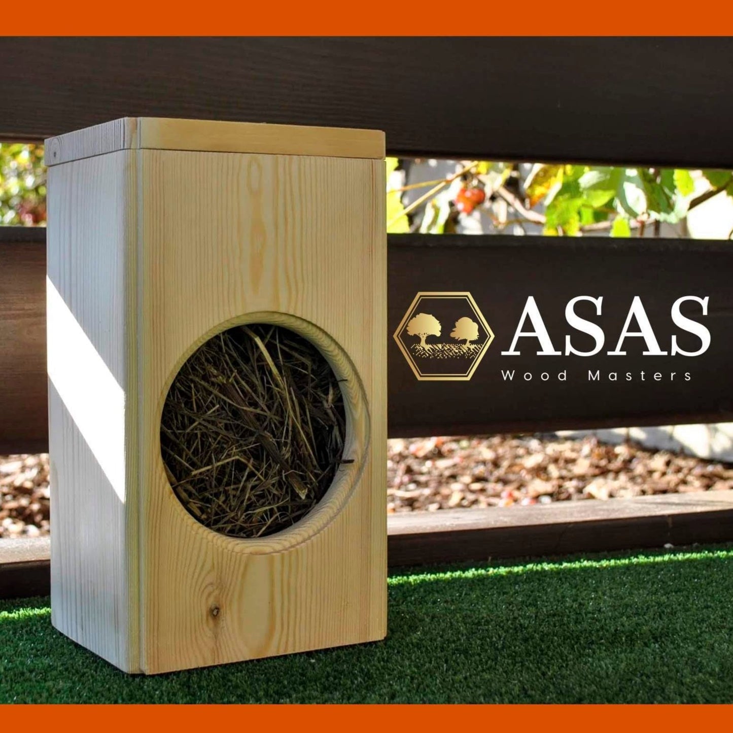 This hay feeder is made from Solid Kiln - Dried Wood / PINE, which is safe for pet.